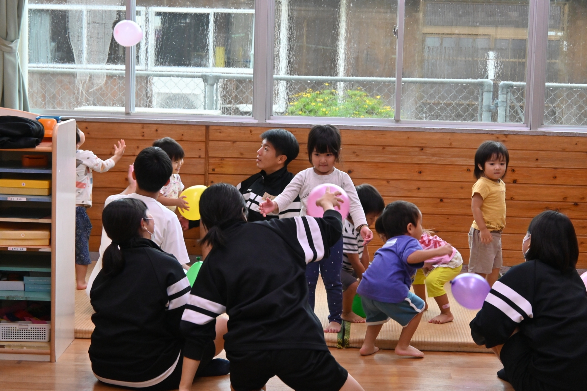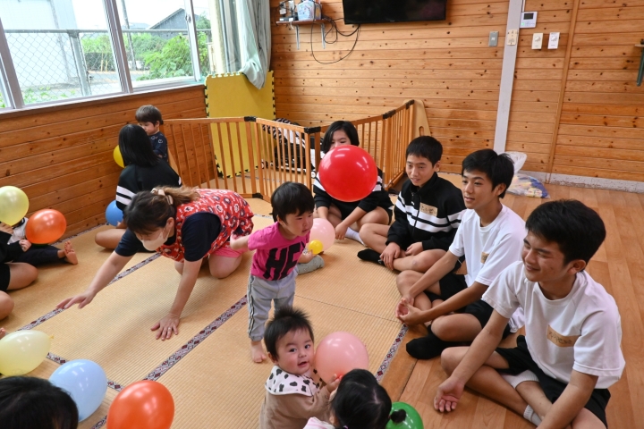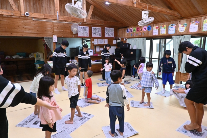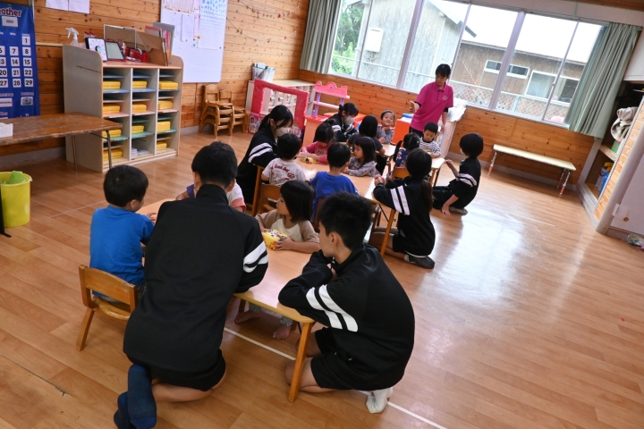 最初は、中学生も園児も緊張していましたが、すぐに遊び始めました。