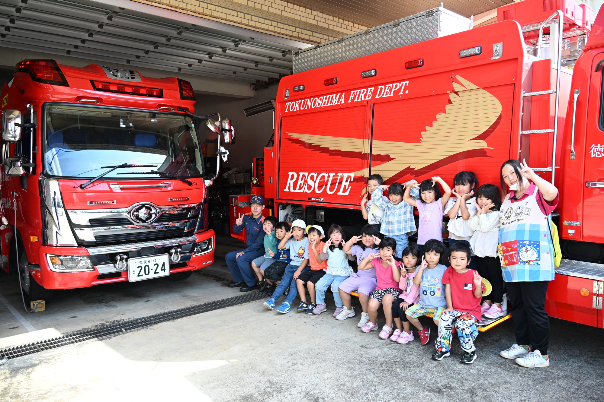 つばめ組(年中)さん、徳之島地区消防組合職場訪問に行ってきました。